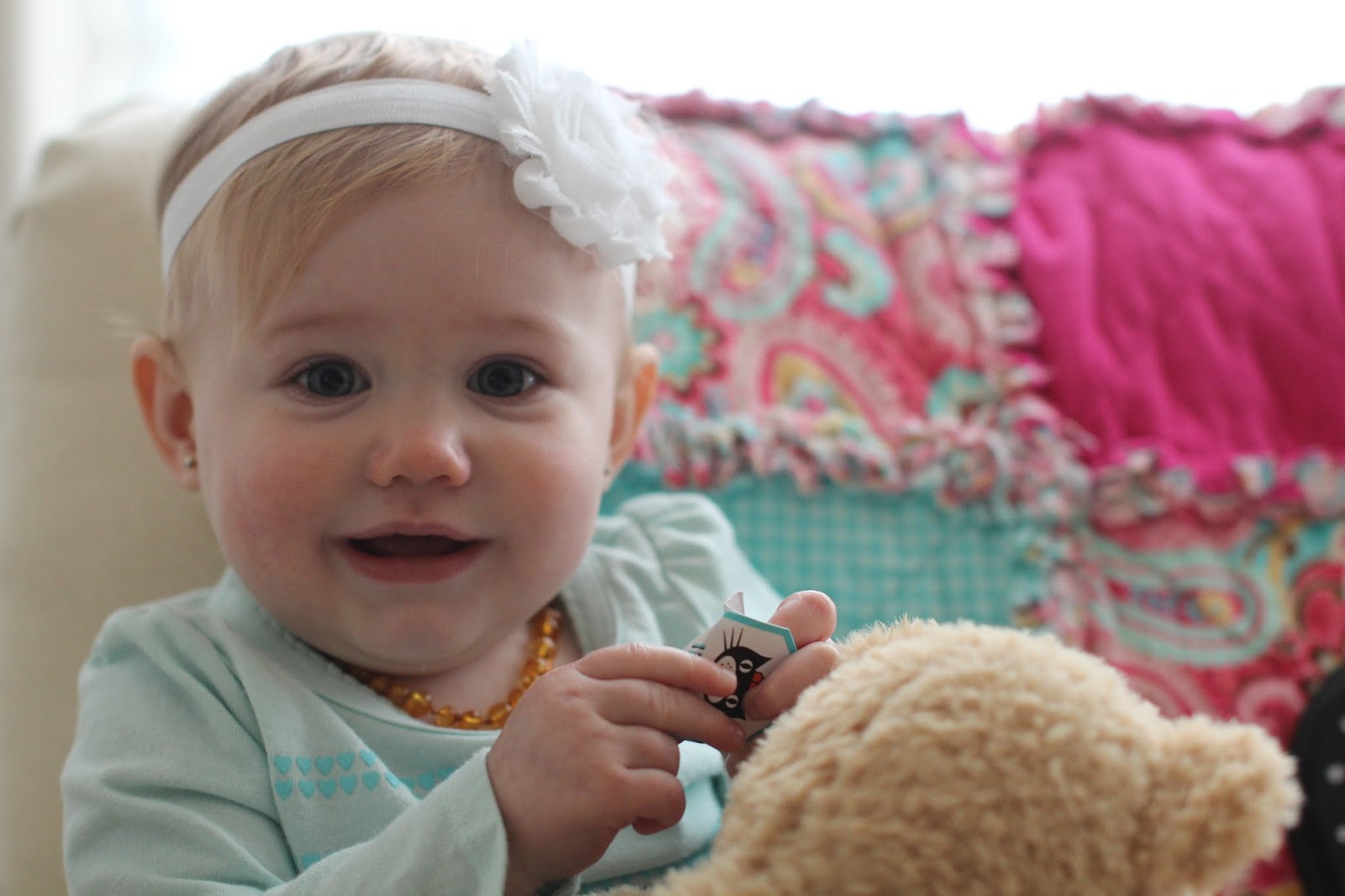 We went to the doctor for your one year check up and you are totally healthy! Small, but mighty! We made it one whole year without and medicine or sick visits! You are still 100% breastfed, but love to explore food also. You are a great sleeper and napper, taking two naps a day and sleeping 10-11 hours at night.