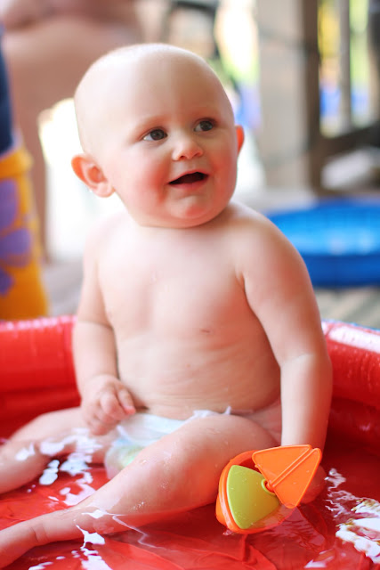 On the Fourth of July, John Thomas enjoyed coffee with Nana and then we headed to Ellen's house to cook out and play in the pool! John Thomas was able to see his